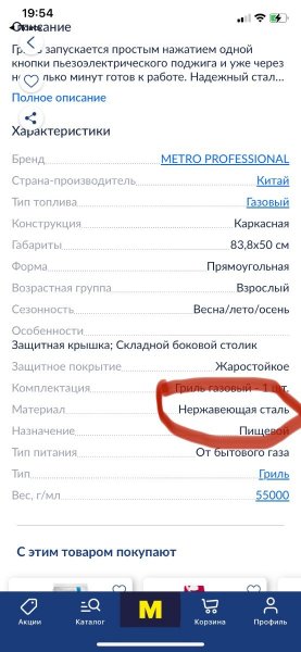 Я не хотел вас чем-то обидеть скидывая видео чистки гриля, смотрел много роликов и видел что если нержавейка, то они её убирают практически до блестящего состояния, способов разных много, кубики льда, вода с лимонным соком, даже есть спец средства и губки от компании 3М для этого дела, был уверен что так и надо. Во всяком случае я бы так и поступал с нержавейкой. Но тут конечно можно сделать поправку на ржавеющую нержавейку с Китая, такая тоже бывает, но тут я бы попробовал предъявить претензию МЕТРО если начала ржаветь. по поводу нержавейки: если она хорошего качества типа 304, то её легко определить с помощью магнита, он не прилипнет к ней, если там 430 или аналог, то тут сложнее, она магнитная…