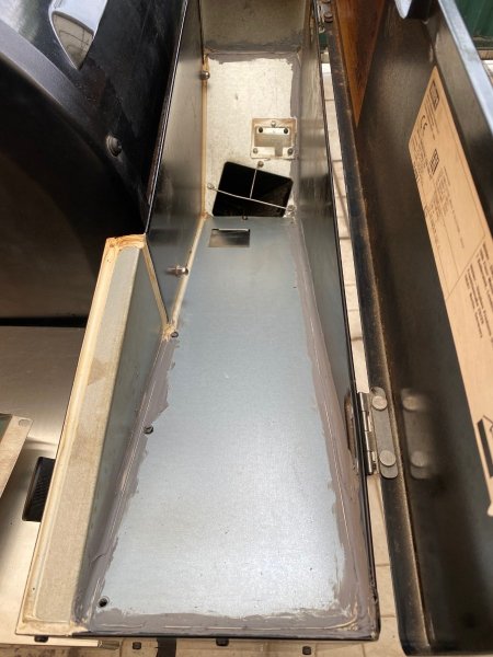 При том бункер изначально промазан герметиком потому что под скатом находятся мозги, чтобы добраться до мозгов нужно всё отдирать, а потом все заново промазывать, сделано чтобы опилки туда не сыпались и чтобы до них добраться пришлось это всё снимать, установлена эта вставка по блядски, просто выкрутили в металл.