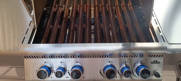 Фото последствий обжига на максималках. 🙂Горелки чуть потемнели, флаворайзеры поменяли цвет на медный и немагнитные пластины у горелок по краям стали синими. Кстати, а как пиццу делать тогда, там же как раз чем выше Т, тем лучше пицца? У меня нормально там всё прикручивалось, а проблема разве что в самом начале была со вставкой днища.