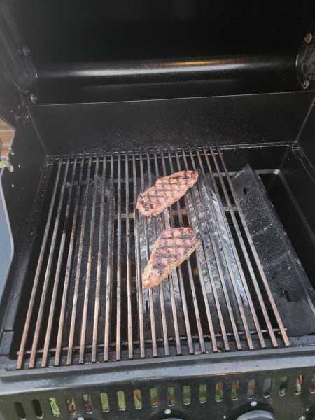 Несмотря на то, что сразу после покупки прокалил родную решетку с маслом по инструкции, через месяц простоя на крыльце на ней начали появляться рыжики(( Купил на пробу на озоне решетку из нержи 7 мм прут 45х38, встала отлично, думал купить вторую и отпилить недостающие 22 см, но пока и этой хватает...может позже прикуплю. Нержа мне больше нравится. Родной решеткой пользовался один раз, лежит за ненадобностью. п.с. У меня нап легенда, но сути это не меняет.