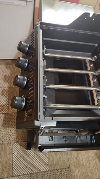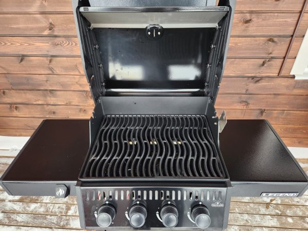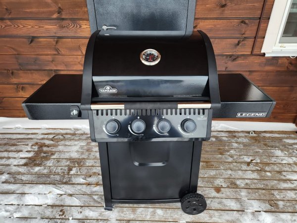 Выбирал между Napoleon freestyle/legend 425 и Weber Spirit Premium EP-335 GBS. Weber был на 70К дороже, а legend появился на ММ за 90К и с 36К бонусов, что и было решающим фактором. Решено – сделано, в ноябре гриль был успешно доставлен на дачу. На бонусы ММ купил: 18 литровый баллон Рагаско, наполеоновский вертел и чехол «готовим на огне». На выходных наконец-то получилось выбраться на дачу и собрать гриль. Сборка не сложная, кто собирал Икеевскую мебель, тот точно справится)) с пивом и перекупами заняла ~1,5 часа, очень порадовало, что гайки уже приварены к корпусу и всё удобно собирается. Первый запуск прошел успешно, по инструкции нужно было 30 минут прогнать гриль на максимальной мощности, при температуре -13 градусов были следующие показатели: 100 С – 1 минута; 200 С – 3 минуты; 250 С – 4 минуты; 300 С – 6 минут; Потом отвлекся, а через 12 минут от старта, когда подошел, стрелка уже ушла за 400 С. Первым делом решил протестить вертел, два цыпленка ~ по кг каждый готовились около 1,5 часов на 180-200 С (две крайние горелки почти на максимум). Получилось очень вкусно и сочно. При готовке положил на фоловайзер коробку со щепой, но щепа почему-то сразу загорелась, подскажите, что я не так сделал? Приготовил ростбиф мираторговский (очень странно выглядел кусок, больше был похож на стейк), но всё получилось)) Крышка не сильно ниже фристайла, думаю, что курица на 2 кг легко влезет. Покупкой доволен, для быстрой готовки самое оно, думаю, что МТ буду использовать значительно реже. Пока гриль поживет на террасе, а весной сделаю гриль зону. П.с. соррян за качество фото, фотограф я ещё тот))