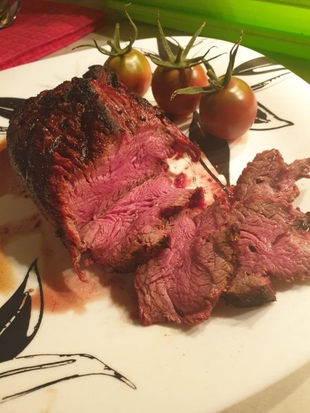 Любимая часть бычка, причем именно травяного откорма. Центральную часть на яблочки, а голову и хвост на а-ля роствбиф или половиню на стейки. Соль, перец, чеснок и больше ничего не добавляю, прекрасный нежный вкус.
