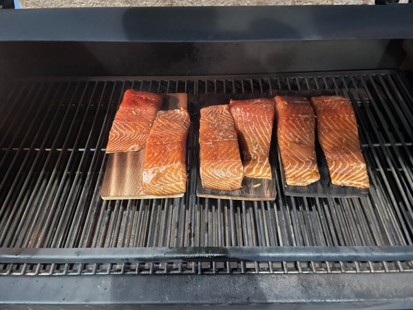 Так же попробовал приготовить лосось на кедровой дощечке по рецепту амокучинаре, вышло вкусно, но не так красиво как в их видео 😄 Белок свернулся при копчении и немного подпортил конечный вид продукта, на вкусе это не отразилось.