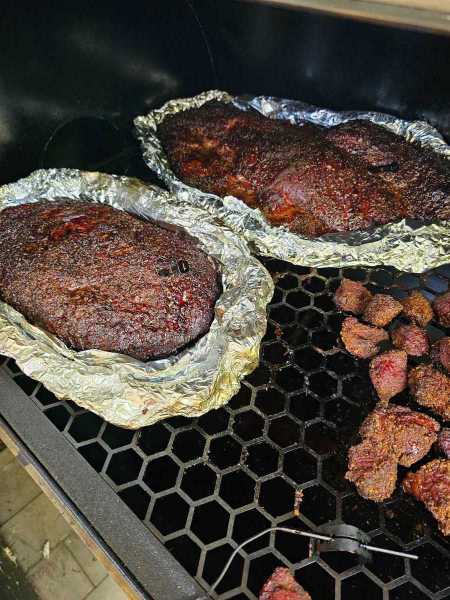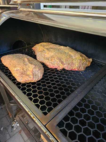 @Алекcандр доски офигенного размера, даже большой 8-9кг брискет ляжет без проблем. Вот фотка готовых конкурсных брискетов на этих досках.