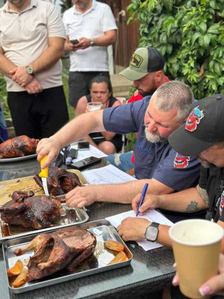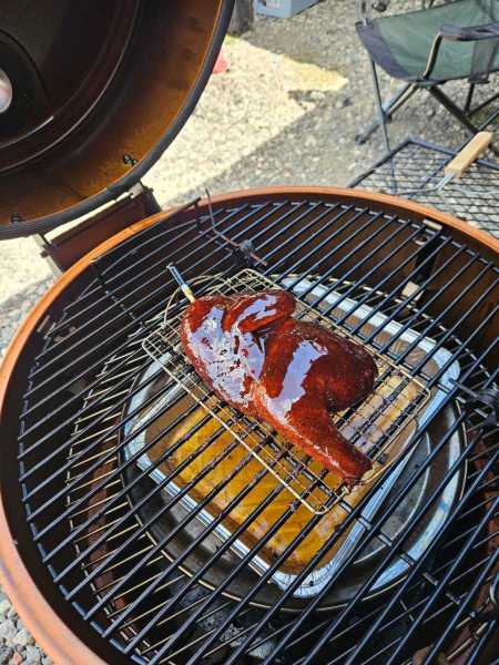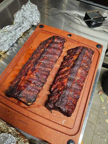 Отбомбили июльскую вечеринку Гастробанды. В это раз уже около 130 человек. Мне досталась готовка 46 лент ребер на трех смокерах конвеерным подходом. И судейство в соревнованиях по утке не вертеле. Обновили weber ranch. Развлекались как могли. VID_20250720_165535_265.mp4
