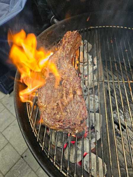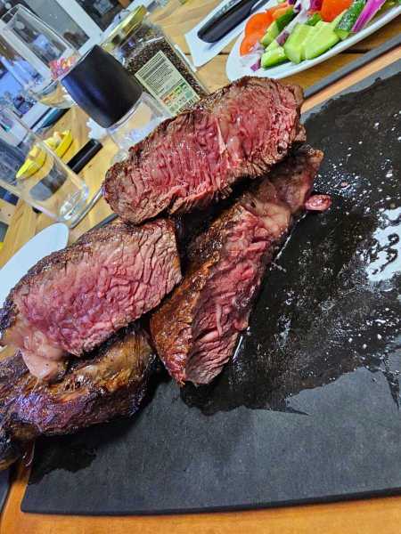 На вкус и на вид ничего пожилого 🙂 Ну может так смотрятся фотки в обычном освещении. Действительно это ковбой, хотя по сути это не так важно. Едим мы все равно рибай. Бычок герифорд. Производитель - магазин "Мясовед" Ростов-на-Дону. Они берут тушу и пилят на стейки. Часть в камере сухого вызревания. Запрещнограм myasoved_rostov Владимир Руссков и Александр Якунин. Вы могли их видеть на видео со встреч ростовского bbq клуба.