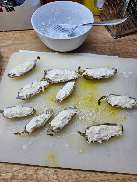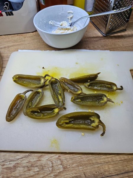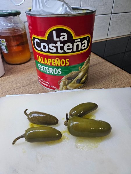От создателей лучших мексиканских сериалов "Просто Мария" и "Дикая роза" новая захватывающая теленовелла "В поисках халапеньо". Пришла банка целых халапешек с одного из маркетплейсов. 1200р за 1.5к перцев. (2.8кг с маринадом). Дорого, но доступно круглый год. Решено было сразу приготовить. В общем получилось прям вкусно. И то что они маринованые дали даже интересных нот. Но есть момент. Маринованый перец соленый, в отличии от свежего и замороженного. И бекон соленый. Запивая пивом я даже особо не заметил, но жена четко сказала что солоноваты. Вижу два выхода. 1) не посыпать рабом сверху 2) использовать супер несоленый сыр. Типа моцареллы. А может попытаться промыть или вымочить в воде после очистки от семян. Но в целом это прям выход если нет свежих и замороженных. Буду экспериментировать дальше.