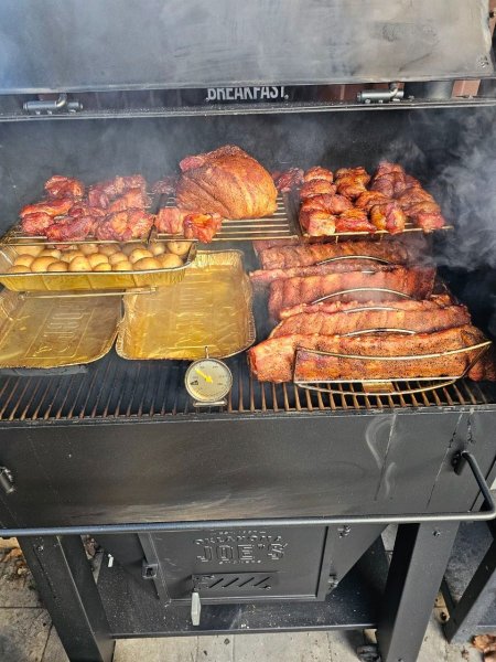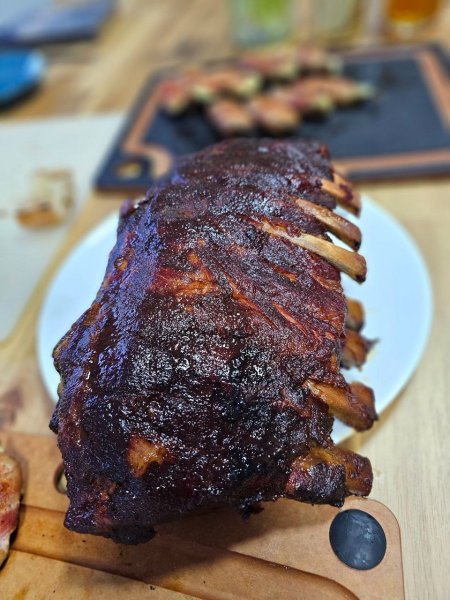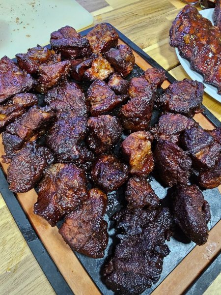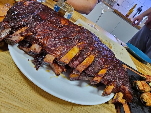 На последнем этапе посиавил только в большойкусок свинины, когда до 96 доводил. Ребра и жженые концы не сильно требуют щупов. Даже колебания по температуре прощают.