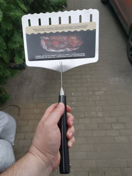 Пришла сегодня лопатка Oklahoma. Хлам еще больше чем старая веберовская. Тонкая жестянка. Какой чудак догадался соединить плоскость лопатки и ручку одной микро точкой сварки? Пришла уже погнутая. Ручка была в сторону загнута.