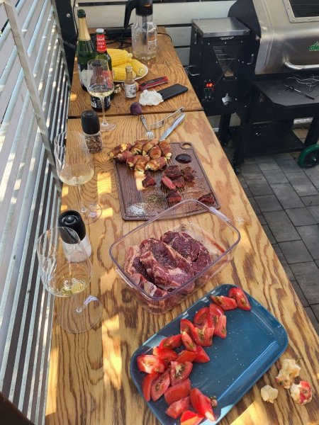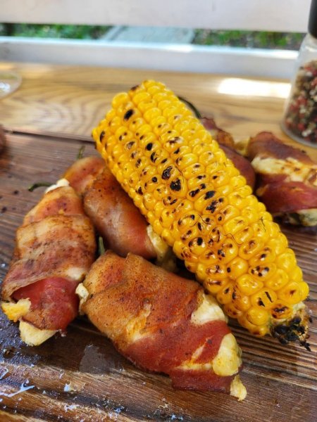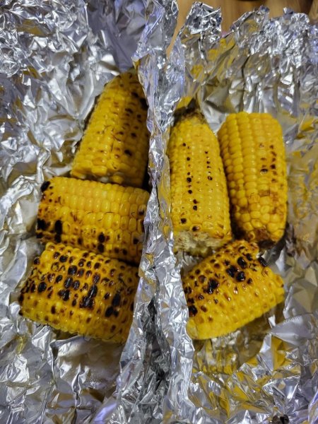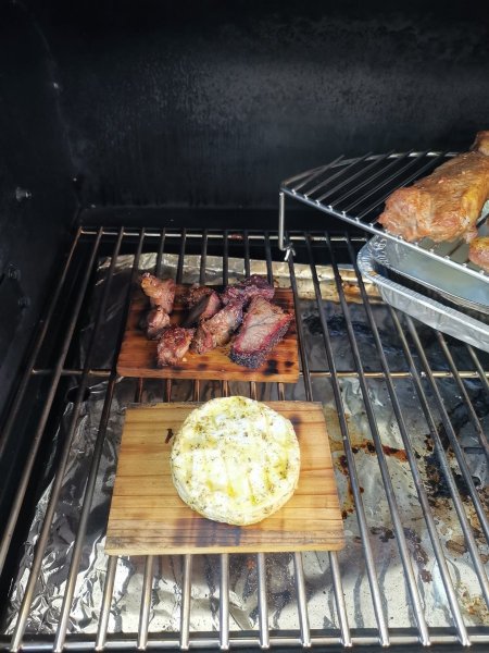 И вы думаете я успокоился? 😁 Свинина, камамбер, подогрев вчерашнего брискета. Була еще кукуруза на 285м, но в кадр не попала.