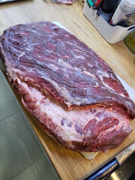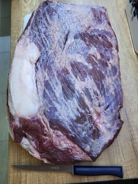 Монстр пошёл. Ставропольский Герифорд. 8.3кг кусок. 1.7 ушло на тримминг. 6.6 пошло в гриль. Мешок оклахомы гикори загружен, впереди минимум 18 часов.