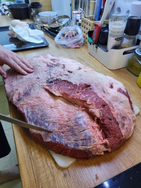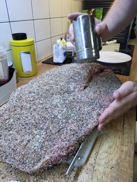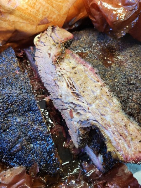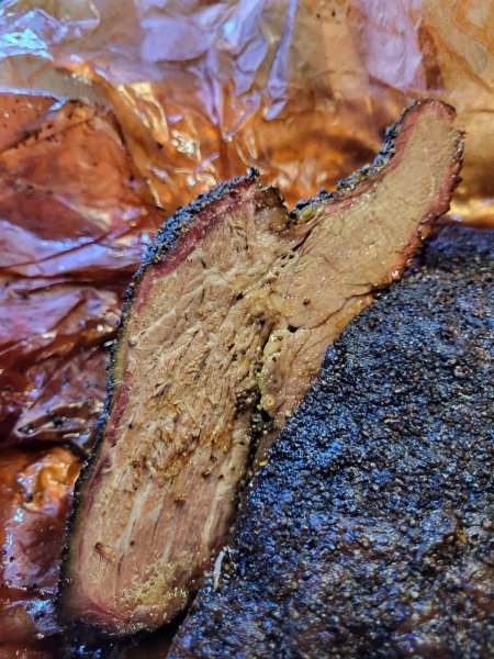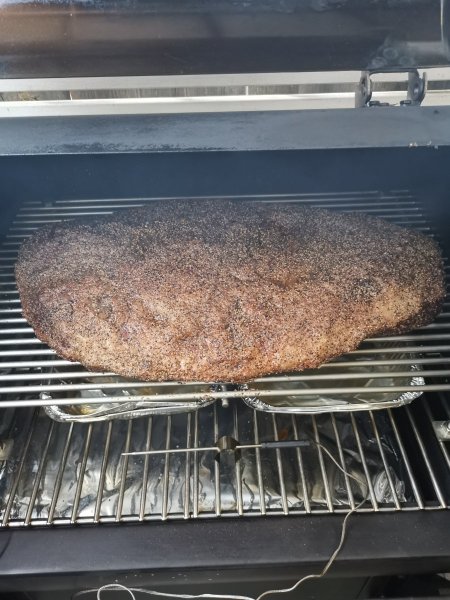 26 часов копчения. 18 до заворачивания. Получилось а..... но. Лучший брискет что я пробовал. Фото максимально плохие, простите.