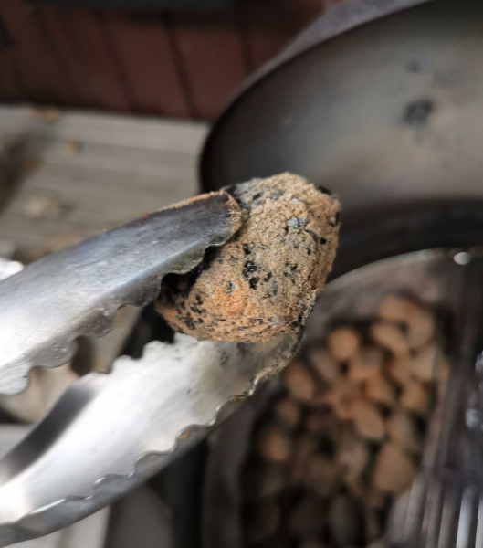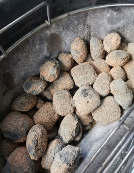 Забыл добавить отзыв о индийских брикетах Weber Брикеты так себе, на уровне белого вебера. На фото после часа работы и последующего остываения. Покрылись какой-то рыжей шубой. В труху не крошатся, но плотность плохая. На второй быстрой готовке догорели полностью.