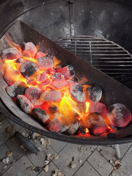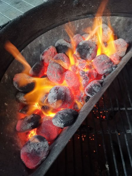 Решил баранинки пожарить на новых индонезийских брикетах. Запалил стартер. Вернулся через 5минут. Подумал что затух. Дыма нет вообще. Первый раз такое вижу. Занятно.