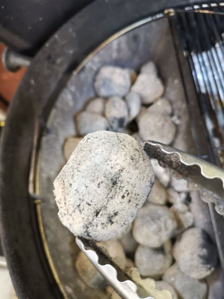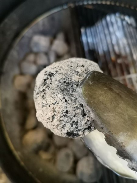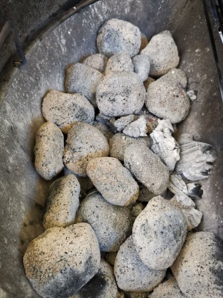 С жаром прям все хорошо. Брикеты вчера отработали 1.5 часа (стартер, прогрев гриля, жарка мяса) +потом затухли и остыли в закрытом кетле Сейчас пошел сфоткал что осталось. Брикеты целые все, пепла мало, щипцами беру по всякому - не разваливаются.
