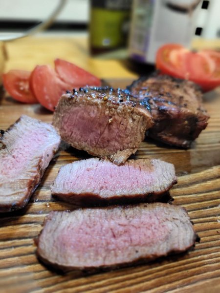 Вырезка с обычной говядины, 3 недели влажного вызревания в стартах. Вкус прям топ. При входной цене 1100 за кг - большой конкурент заводским миньонам с мраморки в 3-4 раза дороже.