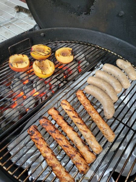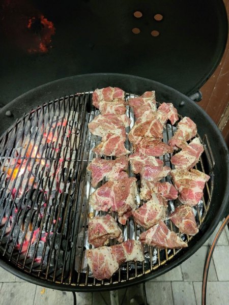 14. Замера температуры не было, субъективно по мясу понял. Плюс визуально через 40мин верний слой покрылся пеплом, а горение алым цветом было у брткетов внизу корзины. Уже жарил на них второй раз. Пол стартера свежих добавил. Колбаски, нектарины. Есть мысль вроде не лишенная логики. 15кг мешок тяжелый, плюс нет ручки - провоцирует на всех этапах логистики его швырять, пинать и тд. Плотная набивка еще приводит к "неупругим ударам" и травмированию содержимого.