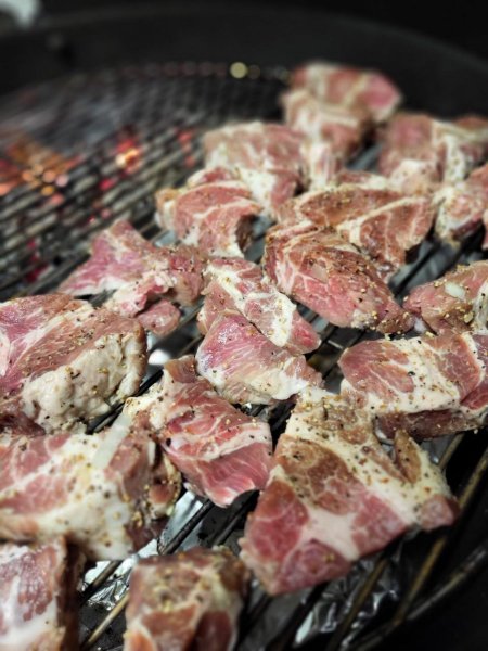 7. Так вот, основная мысль которую я хотел донести про особенность брикетов. Я часто готовлю на сильном непрямом жаре. Конфигурация как на фото. Полная корзина (полный стартер), под продуктом фольга, все заслонки открыты. Воздух в этом случае проходит в основном через корзину снизу вверх. Когда я использую крупные брикеты Главжар или Брикетс то воздуху достаточно места и получается некий эффект кузнечного горна или стартера. Брикеты раскалены, приготовление очень быстрое. При спользовании брикетов Чили у меня получается что верхний слой досточно быстро покрывается пеплом и немного приоставает, а горение активное смещается к дну корзины, где больше воздуха. Это видно на фото. Образование пепла забивает небольшие каналы которые остались для воздуха между мелкими брикетами. В этот момент и происходит то самое небольшое снижение температуры о котором я говорил выше. Но это не мешает приготовить мясо, просто происходит минут на 10 дольше. Я реально давно не готовил в таком режиме на вебере, но на 800drs эффект абсолютно аналогичный. С другой стороны если вы готовите на прямом жаре - такие брикеты дадут более щадящий жар и готовить будет удобней. В общем нет ничего универсального. Выбирайте топливо под задачу.