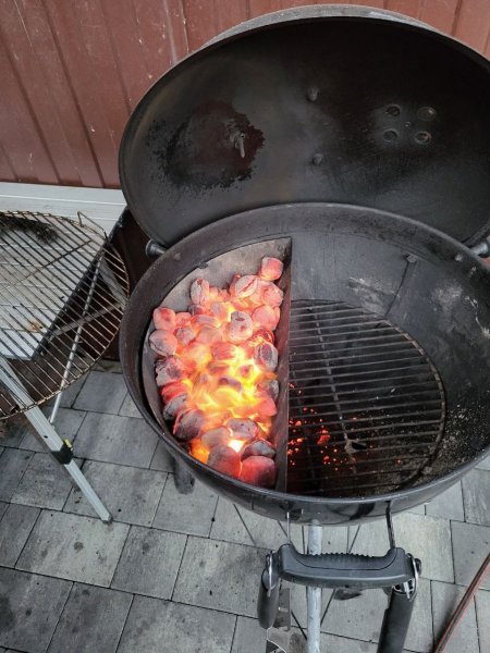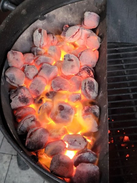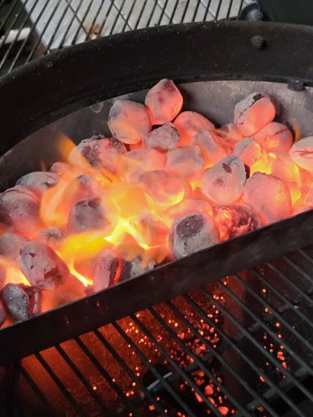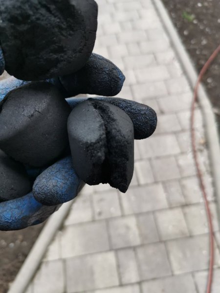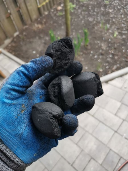 Доехали до меня брикеты Чили-Грилли. Куплено за свои. Нейросети не будет. Начинаю писать эти строки еще наблюдаю стартер. Цена 2300+300доставка. 173руб кг. Самые дорогие российские брикеты на данный момент. Мешок 15кг. Хотя сам мешок по размеру как и главжара 10ка. Набит очень плотно. Брикет среднего размера. Чуть меньше webera черного. Сделал фотосравнение сравнение с главжаром. Много колотых, а много с дефектами формовки. Попытался сфоткать. На фото просто жменя которую достал из стартера, не выбирая. Очень дымный при розжиге. Жена зайдя в гриль зону спросила чем воняет? Хотя я прям залез лицом в дым - пахнет нормально. Но все равно большие сомнения про LS. Очень жаркие на старте, наверное сказывается много мелкой фракции. Минут через 40 уже покрылись солидным слоем пепла и заметно снизили температуру (заслонки все открытые). Мой вывод - нет смысла.