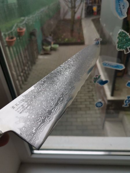 Про дамаск. Это все не дамаск, а травление под хохлому. Настоящий стоит очень дорого. Вот мой Takamura TM-01/DT За качество фото не судите, сложно поймать рисунок камерой телефона.