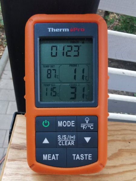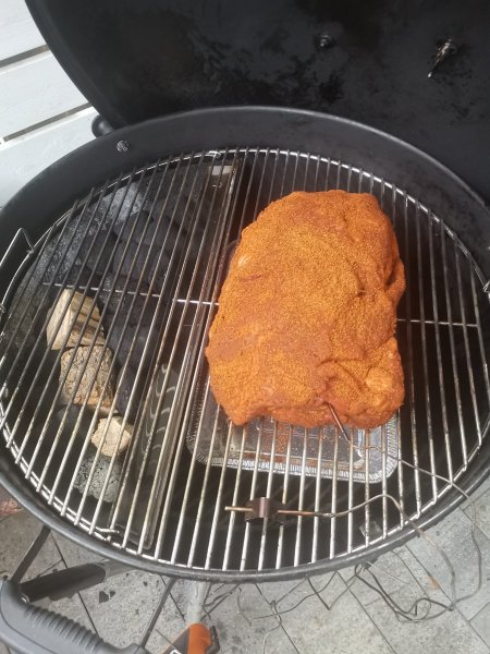 В 7:40 уже заложил. Брикеты Nam-Char (остатки роскоши) Дровишки Гикори weber Сухой маринад Santa Maria Свинина шея 2.5кг местная фермерская.