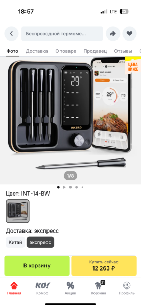 Factys Опубликовано 19 февраля Поделиться Опубликовано 19 февраля Подскажете может, какой лучше купить: ищу термометр с 4 щупами ( можно и 2) с самым дальним сигналом чтобы в приложение приходили уведомления , гриль стоит в 70-90 метрах от дома(+ бетонная стена и второй этаж), около гриля интернета нет, в доме есть, рассматриваю INT-12-BW (да только 2 щупа но важнее чтобы на телефон уведомления доходили ) INT-14-BW и IBT-26S5G Ссылка на сообщение Поделиться на другие сайты Поделиться